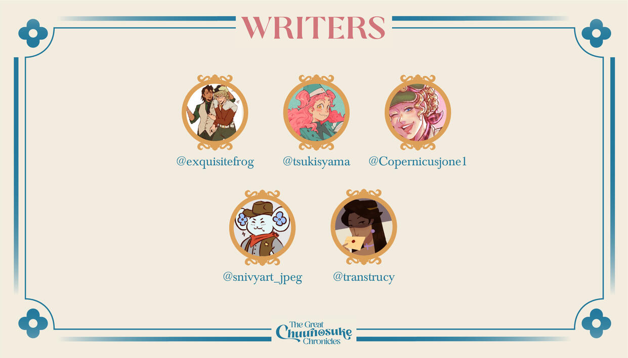 ✤ 5 writers (there may be a chance to get partnered with a page artist to draw a scene from their story, but it's still up for deliberation)